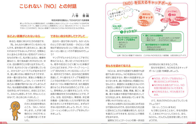 西宮市男女共同参画センター刊行『「頼むと断る」どっちが苦手ですか』に八巻香織が『こじれないNOとの対話』寄稿しました。同センターのホームページにも掲載。